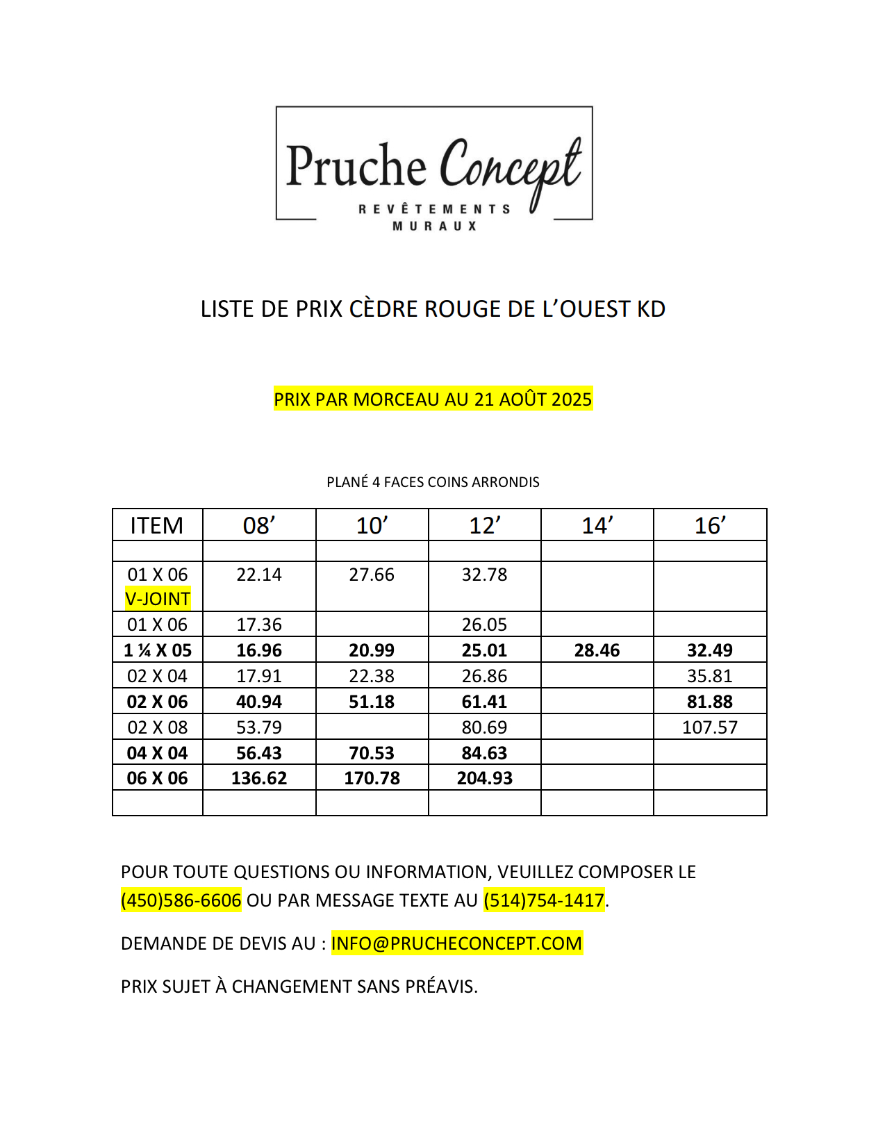 PRUCHE SHIPLAP MI-JOINT | 10.93$ | 13.66$ | 16.39$ | x | 21.86$ |