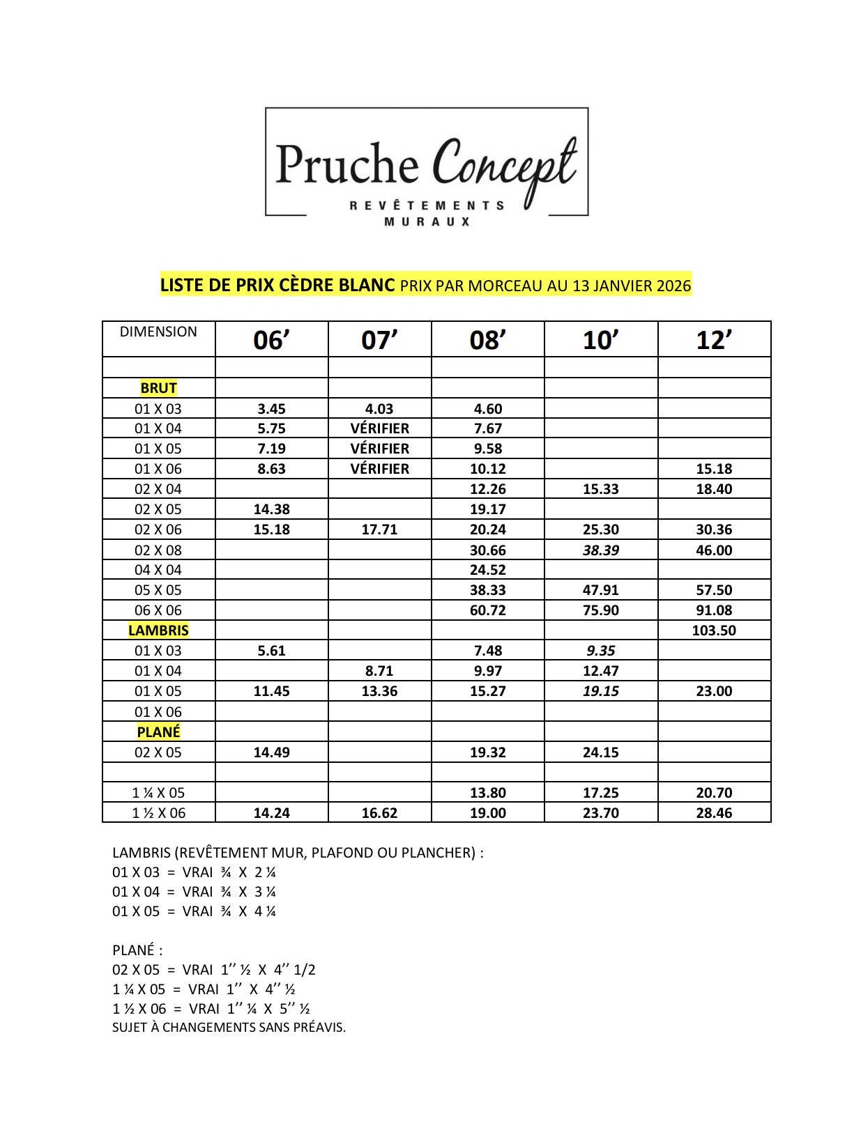 Listes de Prix & Essences de Bois