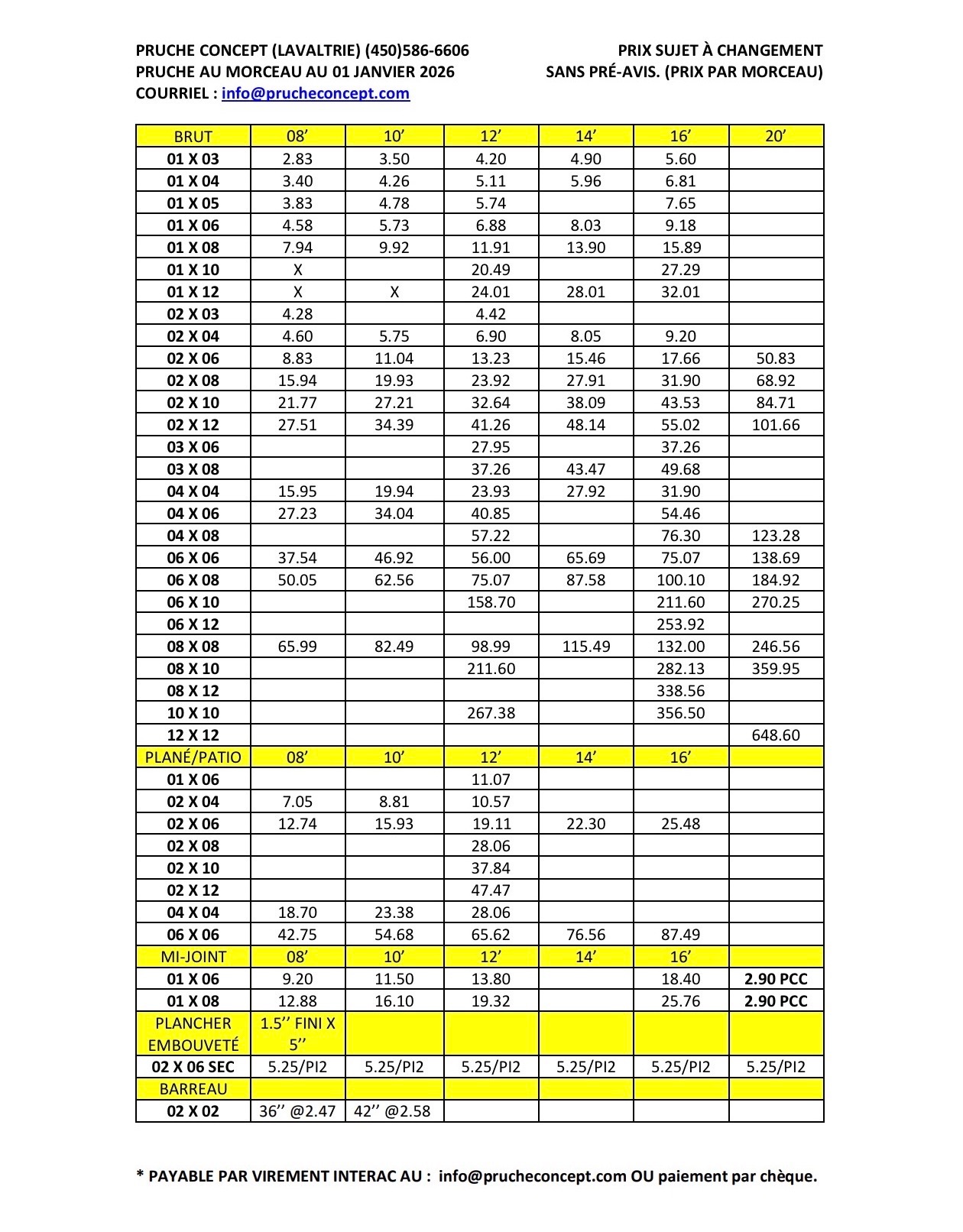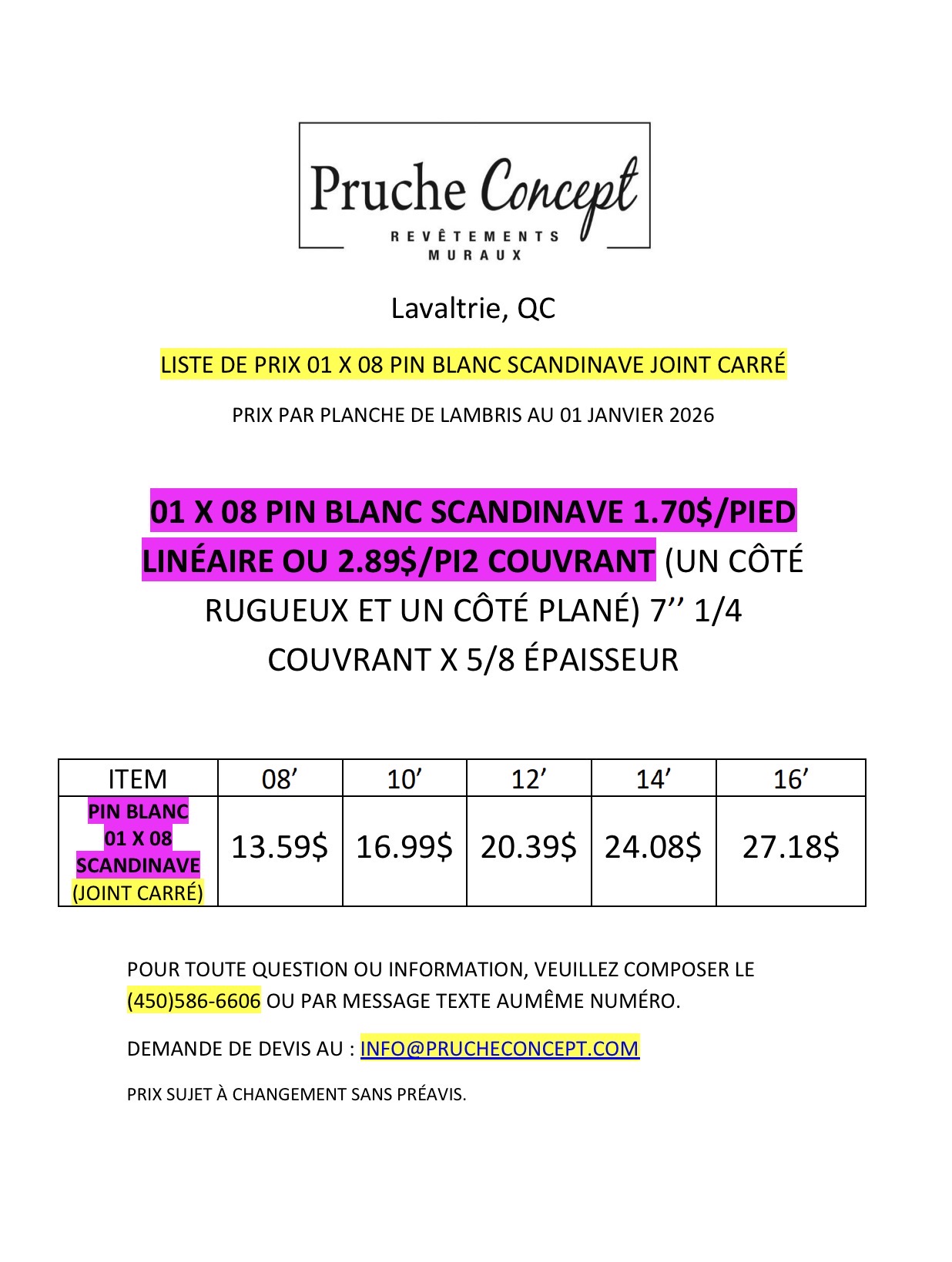 Liste de prix pruche shiplap mi-joint